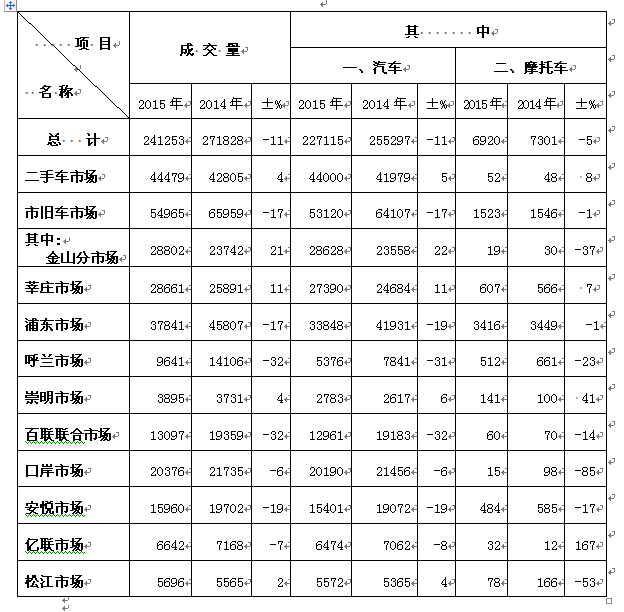 从交易品种看,汽车交易总量227115辆,同比下降11.04%。其中:客车交易量209201辆,同比下降10.98%(其中轿车交易量为157008辆,同比下降4.94%);货车交易量17914辆,同比下降11.71%。摩托车交易量6920辆,同比下降5.22%。其他类车辆交易量7218辆,同比下降21.80%。