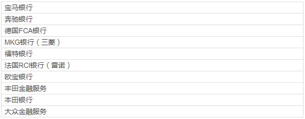 10家厂商专属金融机构代理了德国31个汽车品牌: