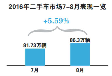 统计数据显示,8月,全国二手车市场交易量达86.3万辆,环比增长5.59%,同比增长15.3%。交易额为498.97亿元,环比下降6.75%。截至8月,2016年全国二手车累计交易量为649.9万辆,累计同比增长6.53%。 沈荣表示,8月能够重新回到86万辆新的水平基础,不能不说是市场信心的回归。 “9月是二手车市场的交易旺季,随着各地陆续放开限迁政策,加上‘十一’假期的节日效应,二手车市场需求呈现增长态势,在一定程度上促进了9月的市场交易。”沈荣说。