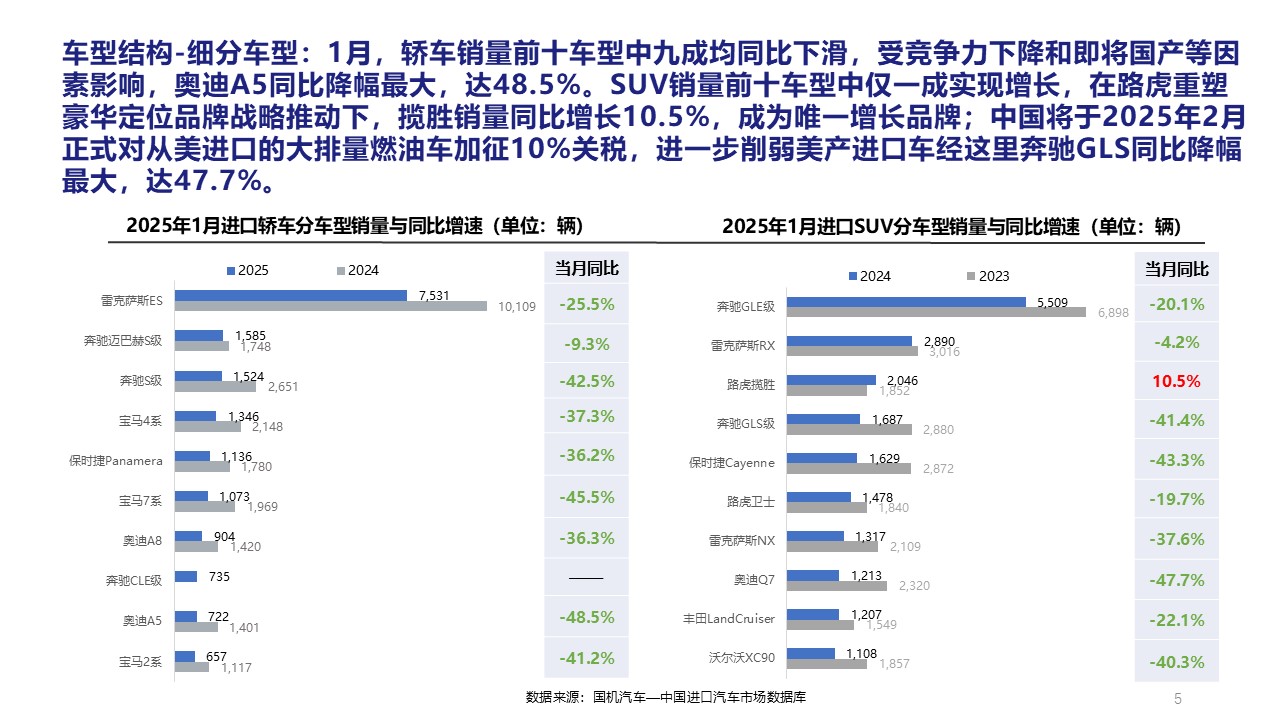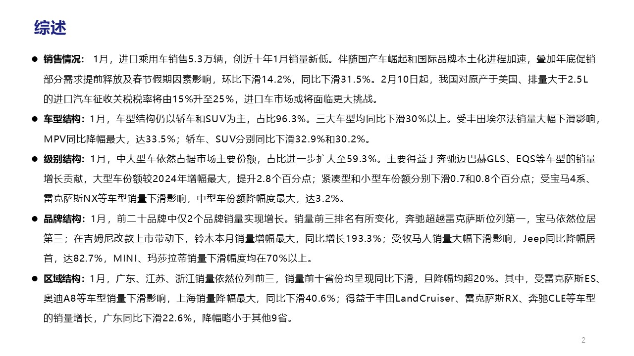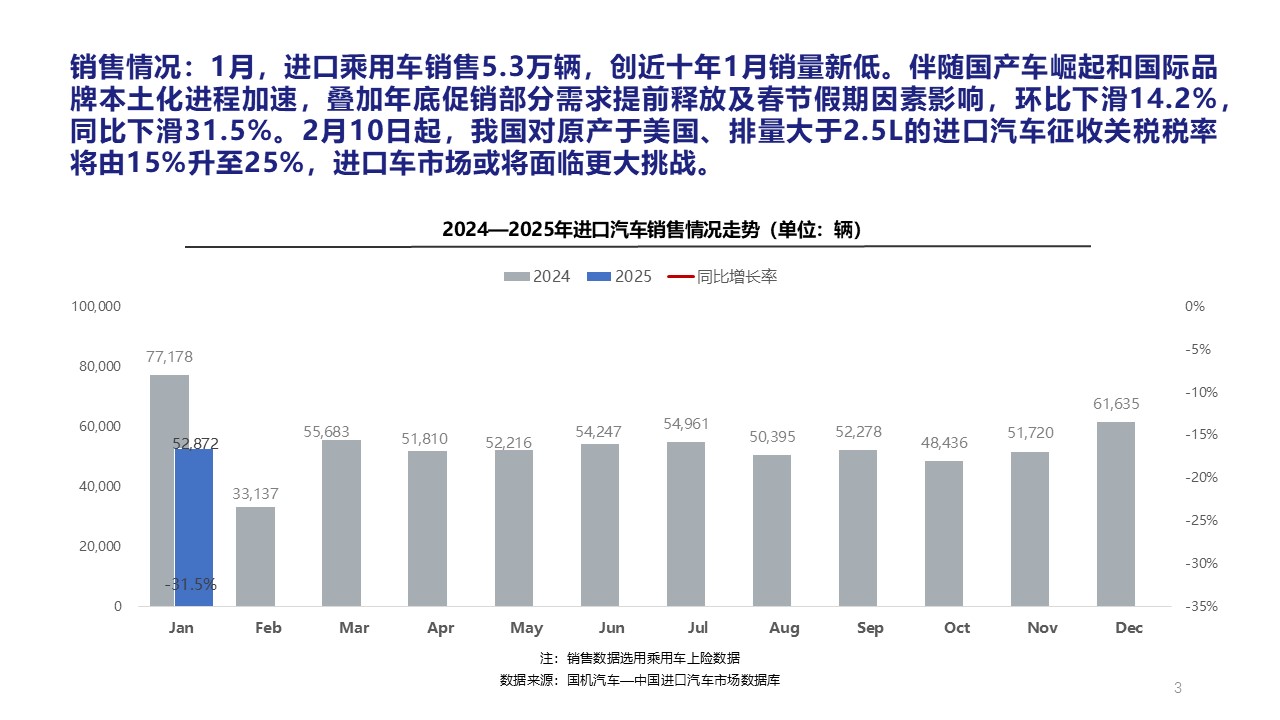 2025年1月中国进口汽车市场情况