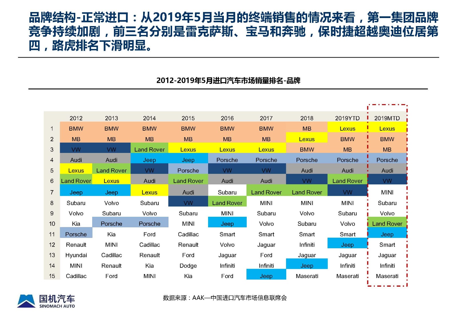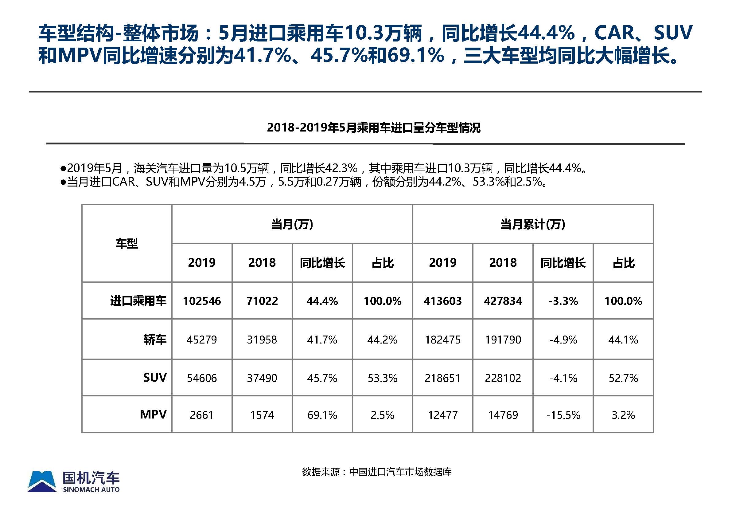 2019年5月中国进口汽车市场情况