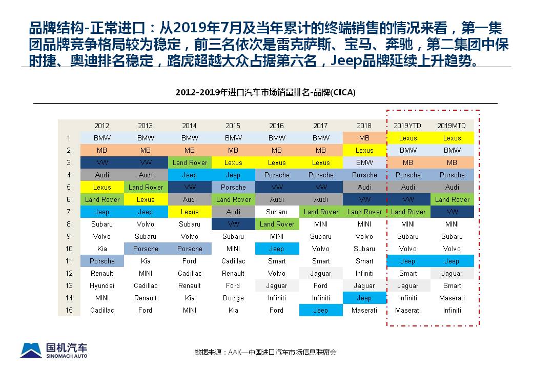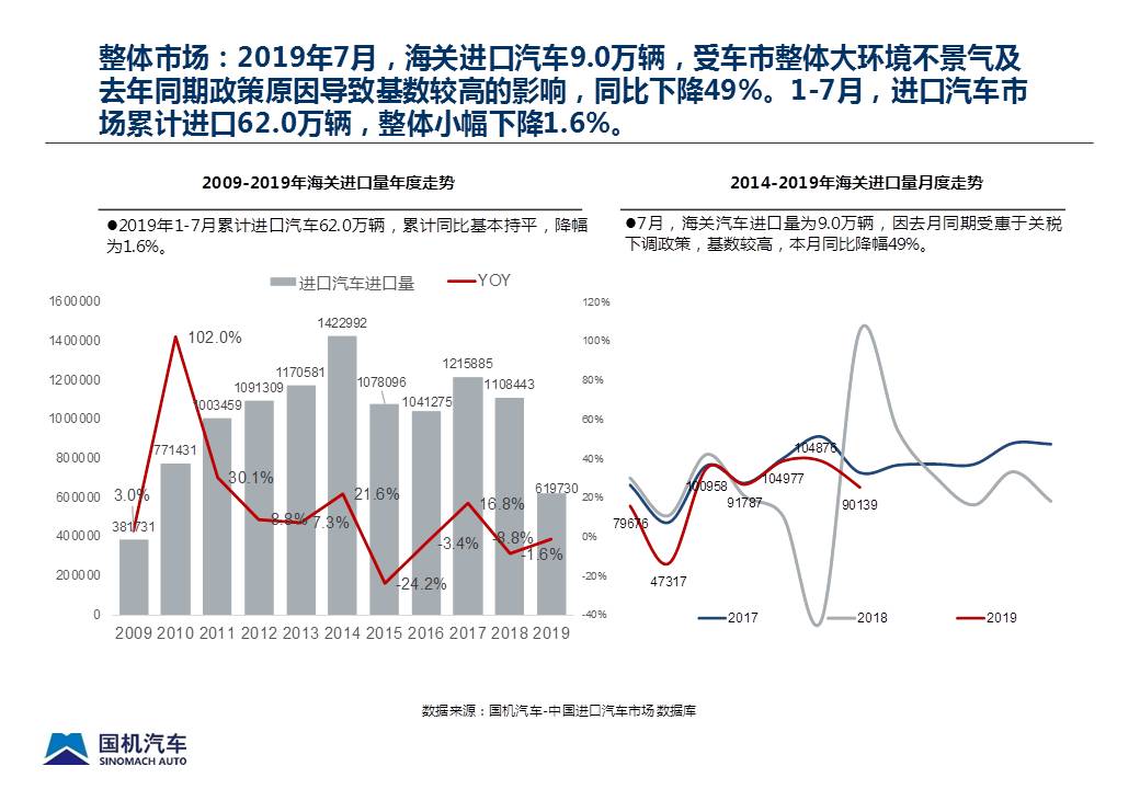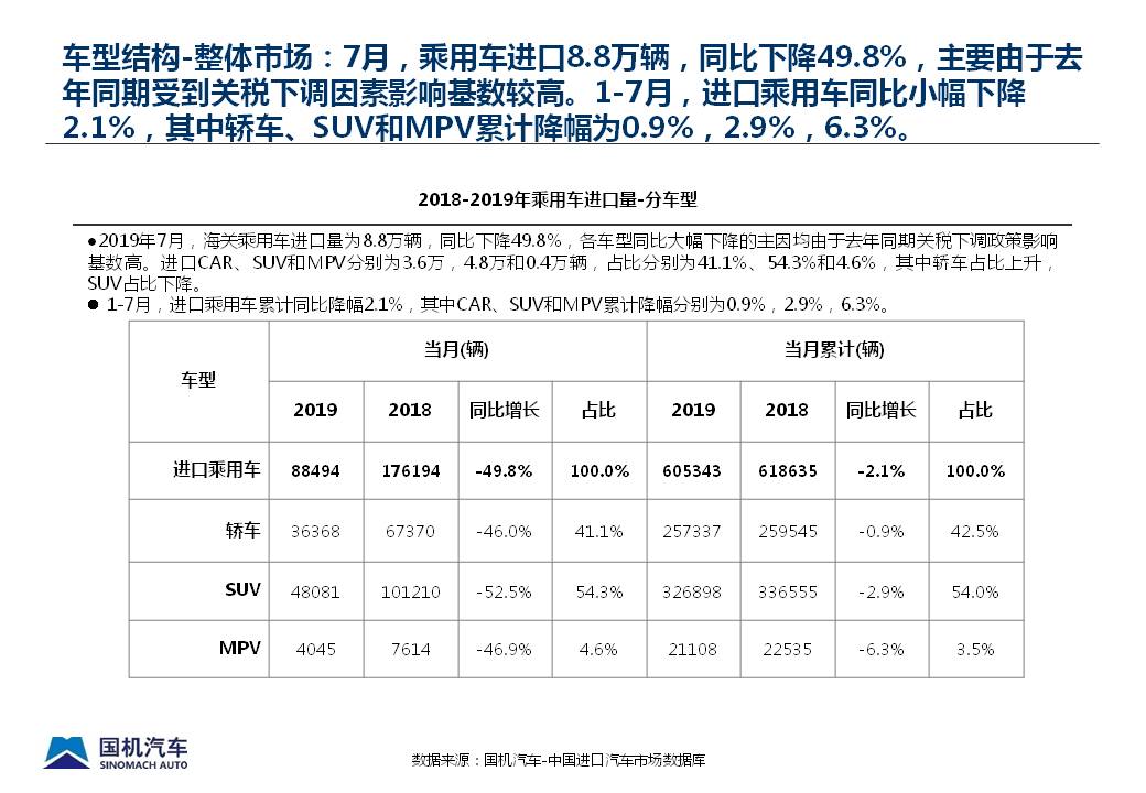 2019年7月中国进口汽车市场情况