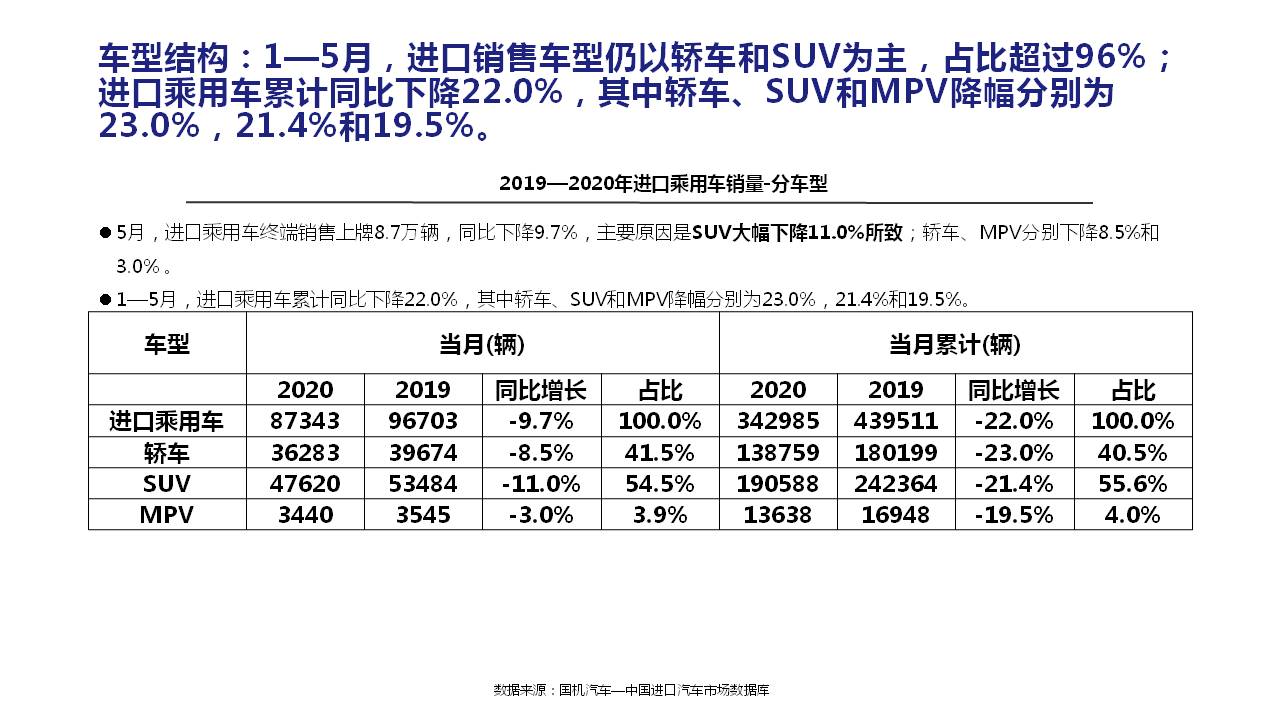 2020年5月中国进口汽车市场情况