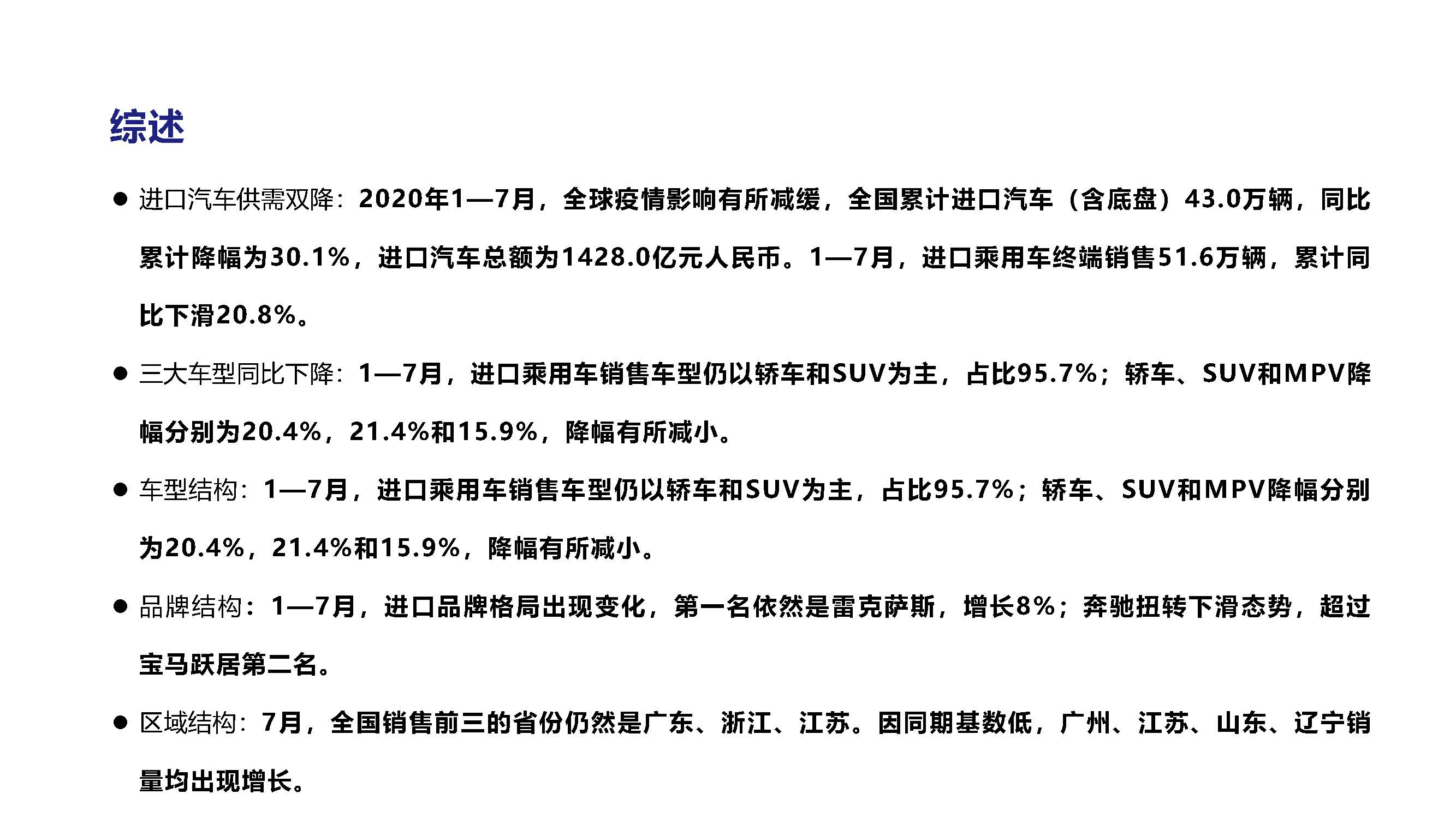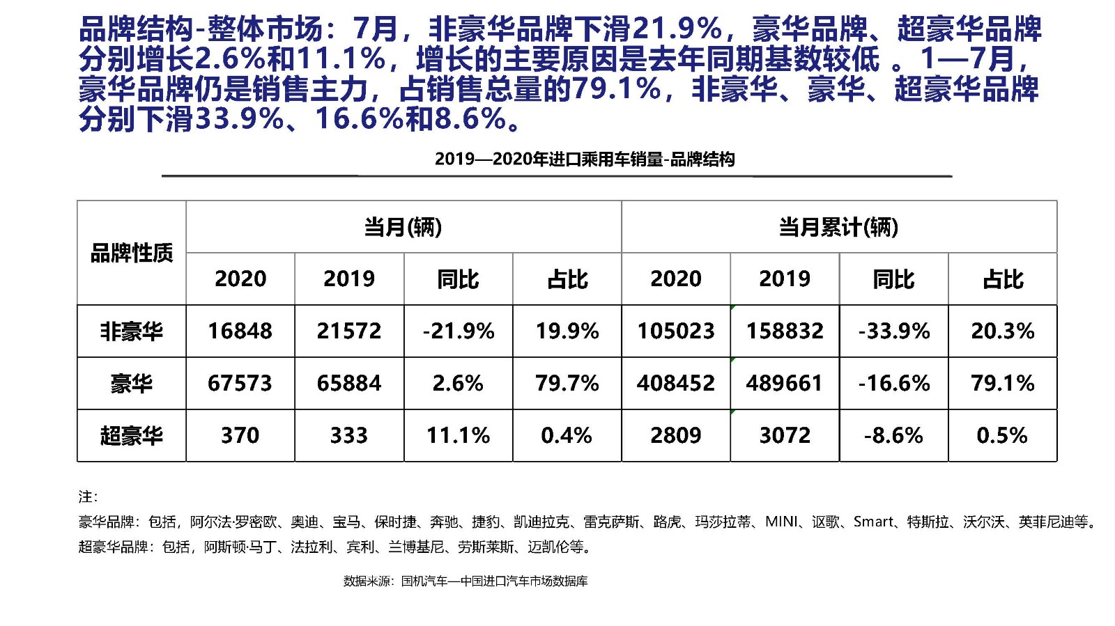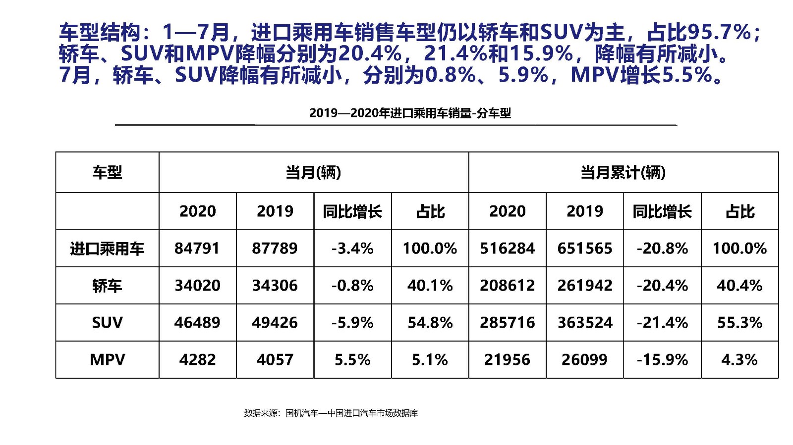 2020年7月中国进口汽车市场情况