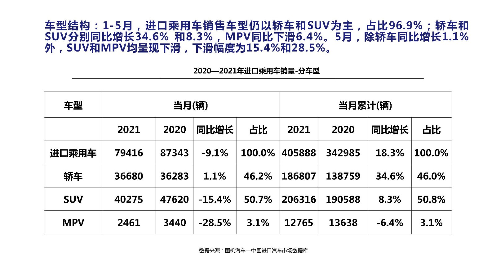 2021年5月中国进口汽车市场情况