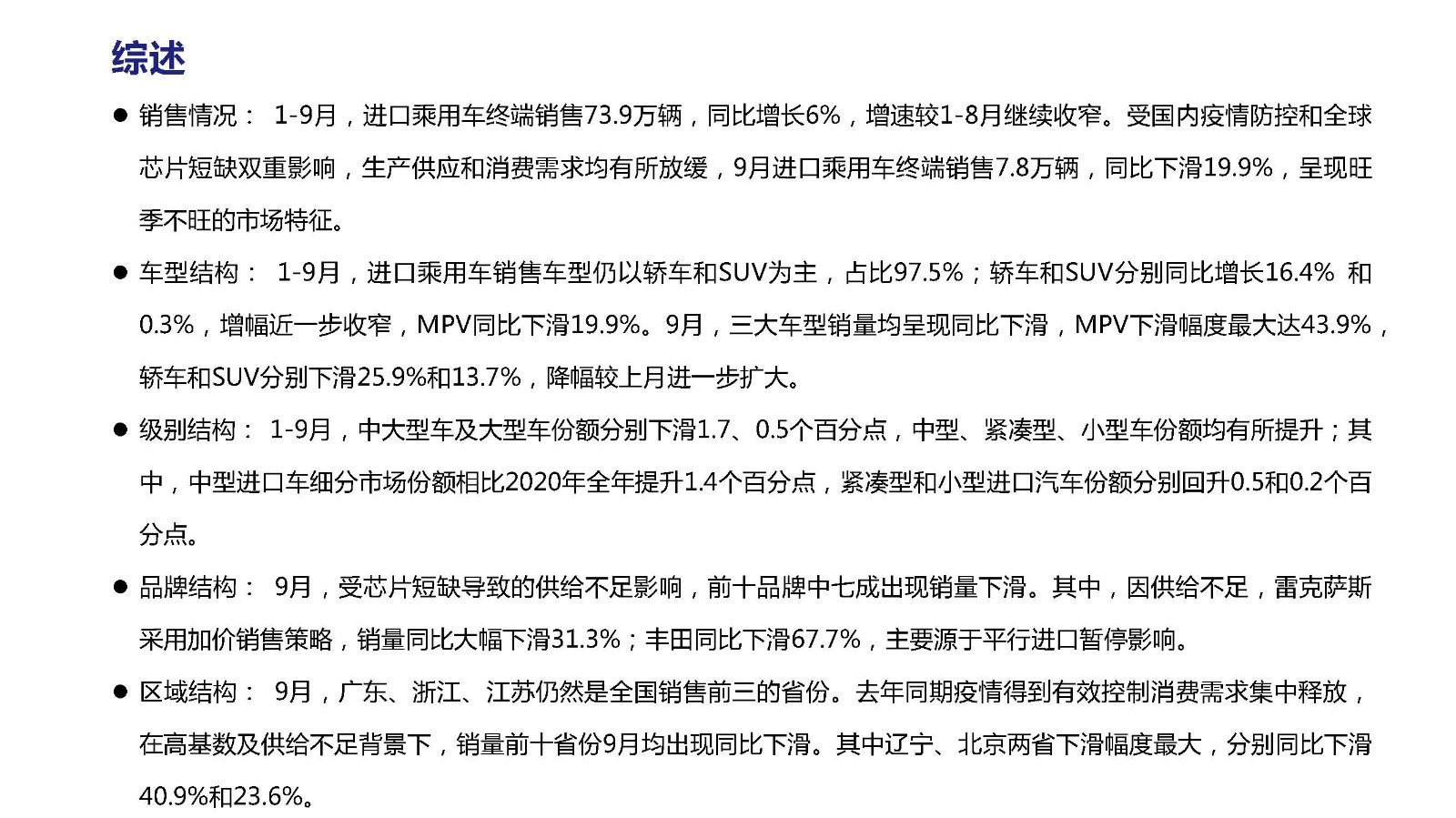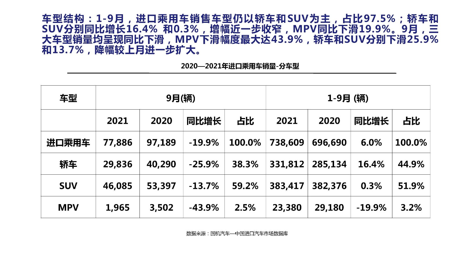 2021年9月中国进口汽车市场情况