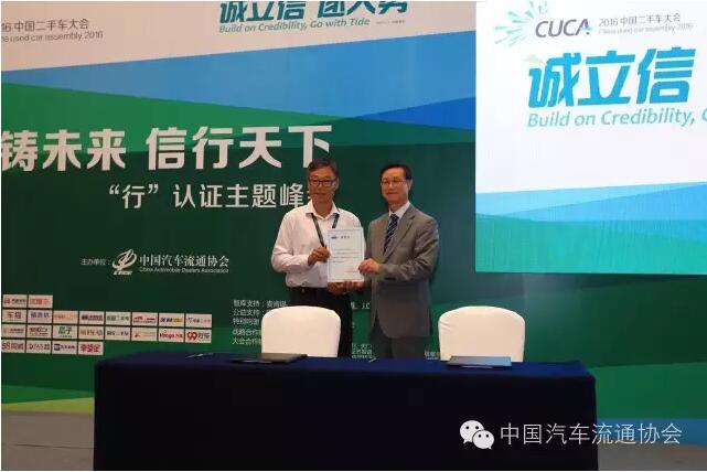 7月5日中国汽车流通协会主办的2016年CUCA中国二手车大会分论坛“诚铸未来信行天下——‘行’认证主题峰会”在重庆悦来国家会议中心隆重召开,北京现代首选认证二手车与中国汽车流通协会正式签约,加入“行”认证行列。