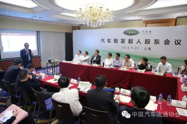 2016年9月20日,汽车街发起人股东会议在上海召开。此次股东会是继2015年8月8日“经销商共建汽车街电商平台签约仪式”后的又一次重大会议。来自广汇汽车、利星行汽车、润东汽车、北京运通汽车、沈阳大众汽车、山东远通汽车、天津捷通达汽车等经销商集团的投资人、长久汽车、北京祥龙博瑞汽车负责人、中国汽车流通协会会长沈进军、副会长刁建申、副秘书长刘文姬、沈荣、宋涛及汽车街相关领导出席会议。会议由刁建申副会长主持。