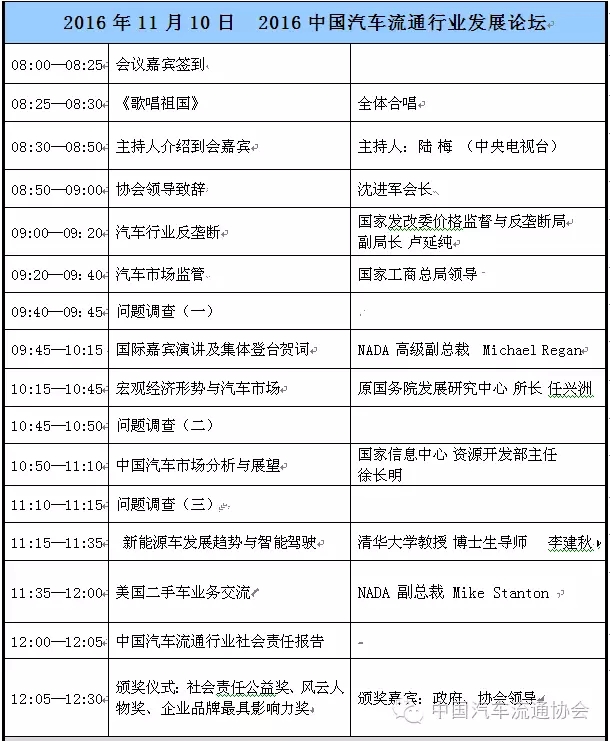 2016中国汽车流通行业年会主论坛议程如下: