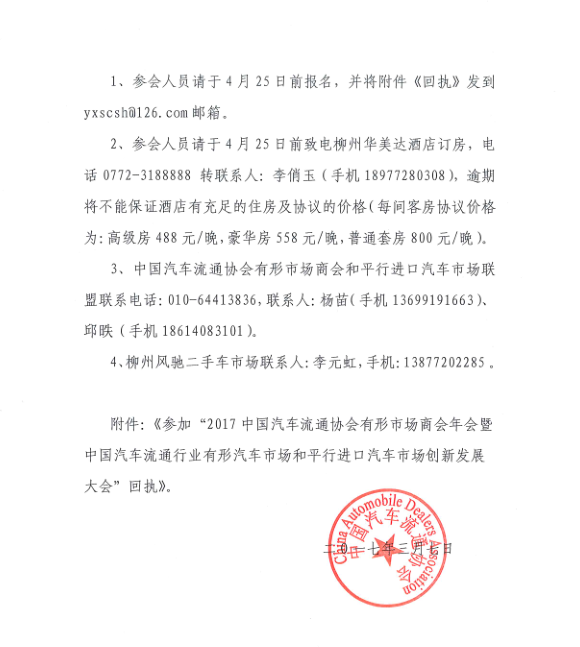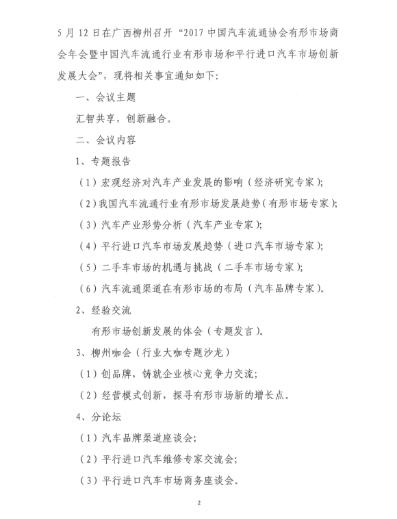 关于召开“2017中国汽车流通协会有形市场商会年会暨中国汽车流通行业有形市场和平行进口汽车市场创新发展大会”的通知