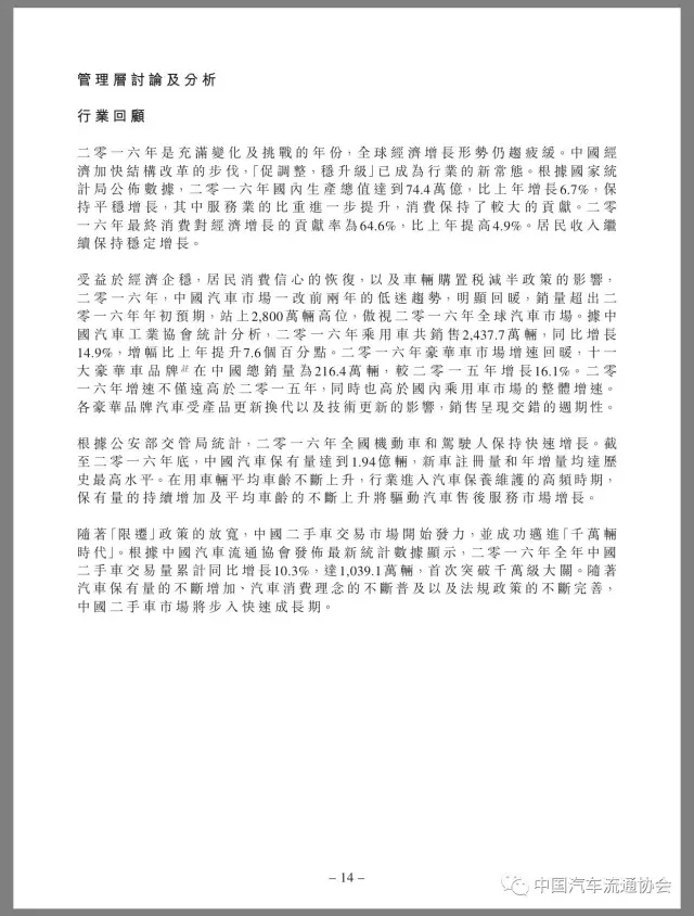 润东汽车2016年取得了令人满意的业绩,主要受益于其对汽车市场发展以及管理层所面对挑战的精准把握、准确洞悉、先行布局、构建契合持续发展战略的业务架构,并对相关业务板块、利润结构及资金分配进行合理的调整、优化和细分。