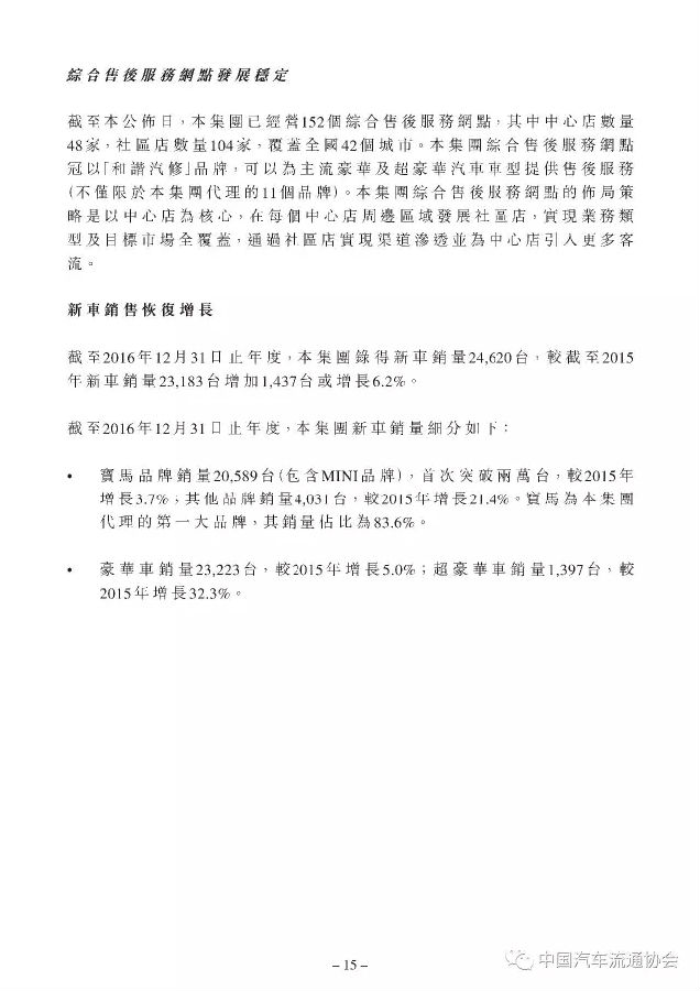百强汽车经销商集团“和谐汽车”2016年度经营业绩公布