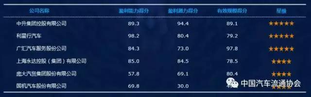 除了百强经销商集团排名之外,中国汽车流通协会按照有效规模将百强经销商集团划分为4个级别,对每个级别排名前10的集团按照综合实力进行星级评价,评选出百强综合实力排名。