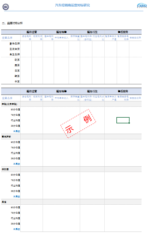品牌榜发布的数据支撑主要来自百强经销商集团2017上半年的运营数据,因此除在年会现场发布榜单外,还将为参与数据填报的经销商集团量身定制详细版对标报告,集团相关人员可以现场领取。对标报告能够帮助经销商清晰了解经营品牌的市场地位及集团自身在各品牌和业务板块运营的差距,进而优化运营策略,提升盈利能力。