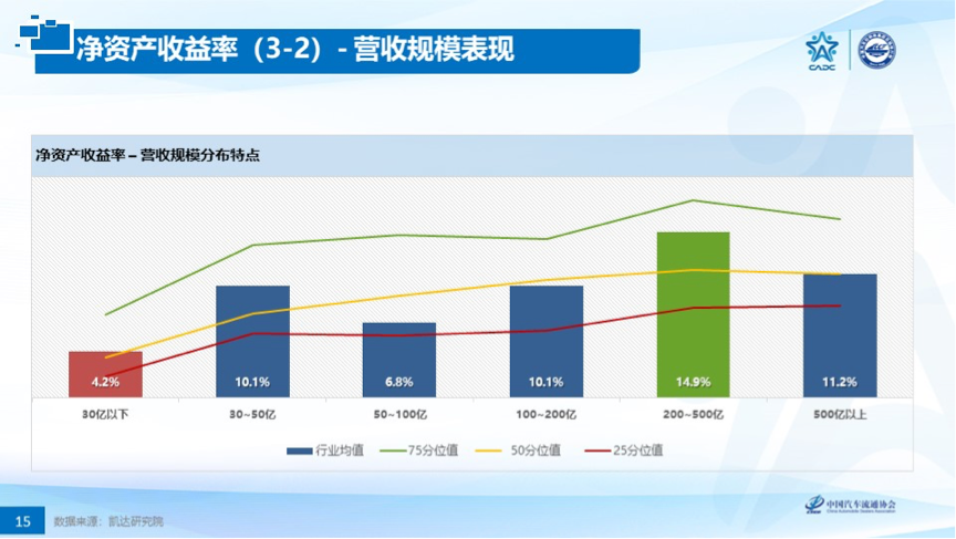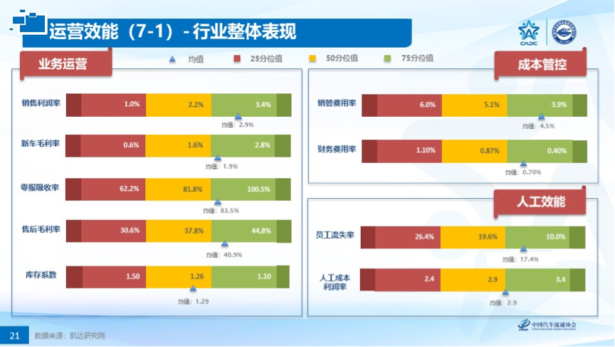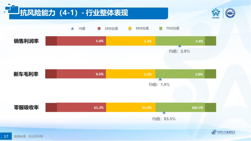 标杆值的发布帮助经销商全面分析获利能力、抗风险性及经营效率,从区域、店龄、规模等维度,全面剖析,为行业提供标杆,为经销商提供预警机制。并通过“四分位法”清晰准确帮助经销商进行对标赋能。