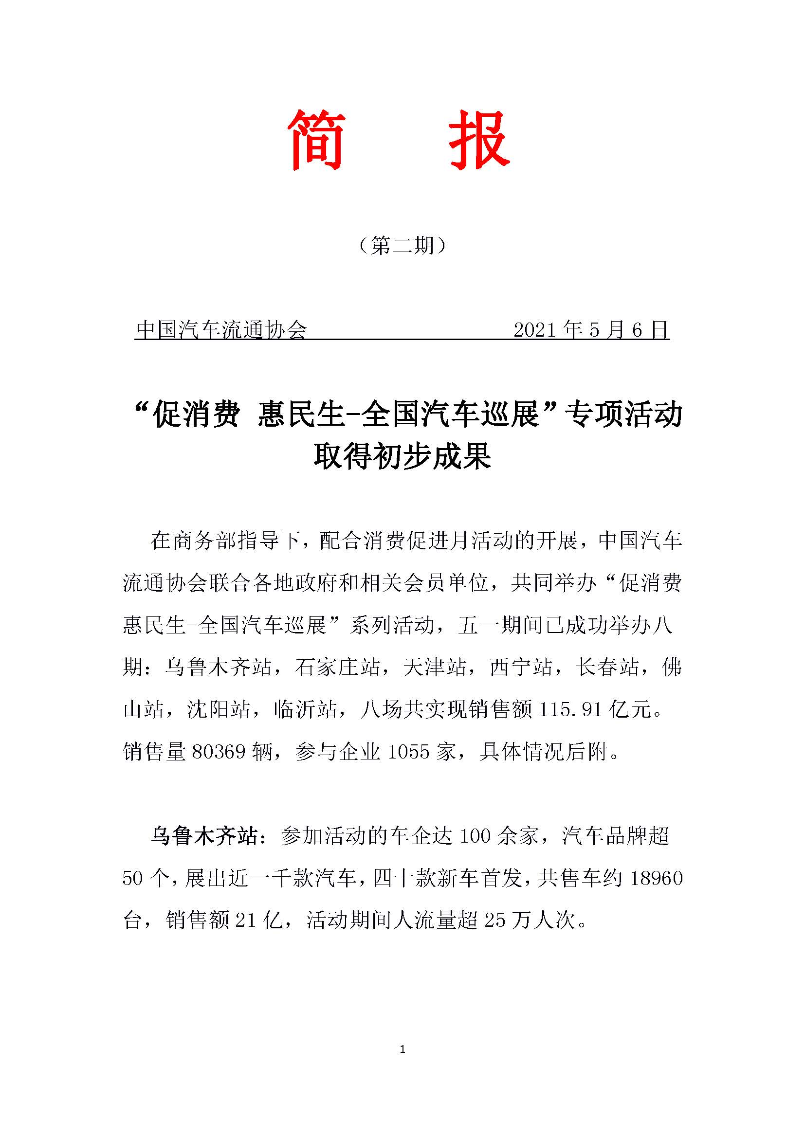 简报“促消费 惠民生-全国汽车巡展”专项活动(第二期)取得初步成果