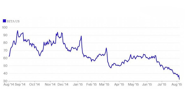 图为易车网在美国股市的走势