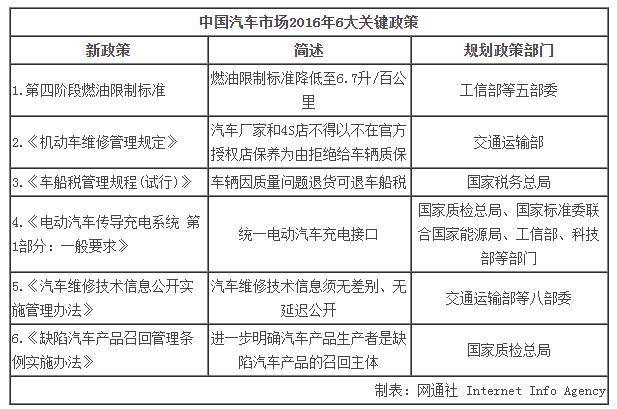 中国汽车市场虽然经历了2015年的整体增速放缓,但受政策利好等因素,新能源汽车市场表现可圈可点,汽车行业政策很大程度上决定了市场走向。来到了2016年,中国汽车行业有哪些新政策的实施,会对消费者的有车(或是即将进入有车)生活产生影响呢?网通社从国家工信部、交通运输部等多部委了解到:2016年有6个关键政策实施,新政将在统一充电接口、燃油限值、售后维修等方面,更大程度上维护消费者的利益。