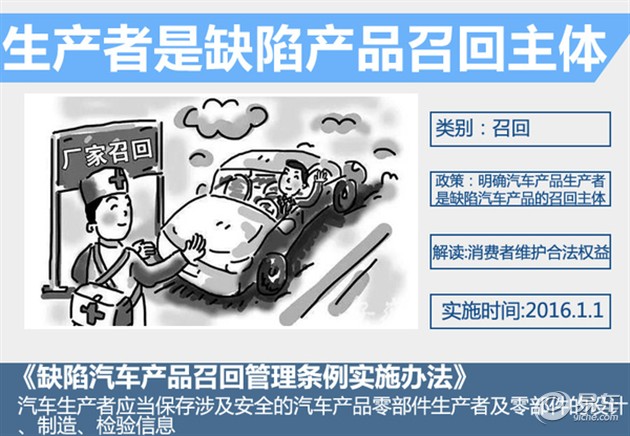 国家质检总局2016年1月1日起,正式实施《缺陷汽车产品召回管理条例实施办法》,废止原有的《缺陷汽车产品召回管理规定》?!度毕萜挡氛倩毓芾硖趵凳┌旆ā方徊矫魅妨似挡飞呤侨毕萜挡返恼倩刂魈澹娑ㄆ瞪哂Φ北4嫔婕鞍踩钠挡妨悴考呒傲悴考纳杓?、制造、检验信息,并且还明确了技术鉴定标准和召回管理协调机制。也就是说,当汽车产品出厂时未随车装备的轮胎存在缺陷的,由轮胎的生产者负责召回,这也意味着召回对象更加细化。消费者可以寻求机构的帮助、获取调查结果、维护自己的利益。