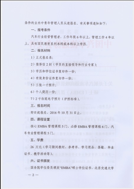 关于开展汽车流通高级管理人员工商管理硕士(EMBA)课程的通知