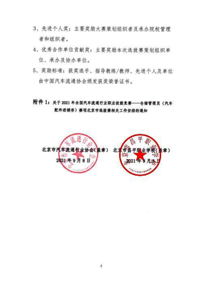 关于2021年全国汽车流通行业职业技能竞赛 仓储管理员(汽车配件进销存)赛项 北京市选拔赛的通知