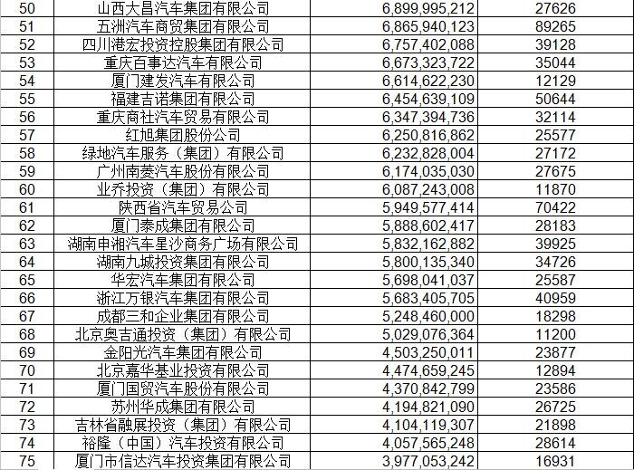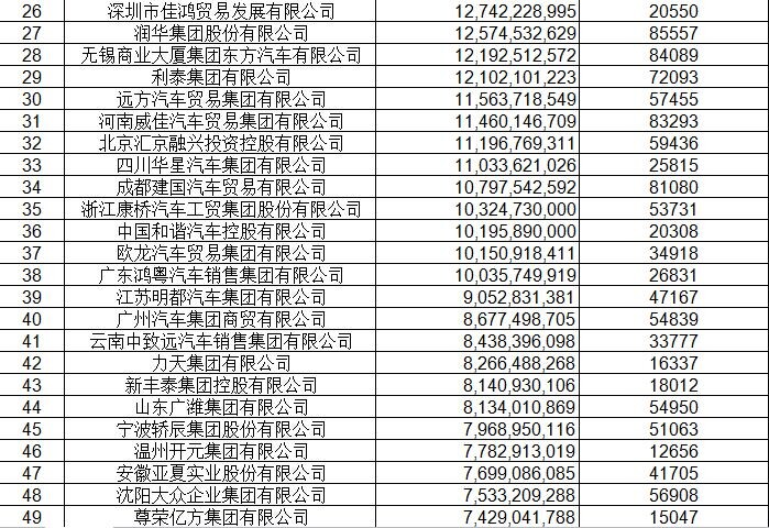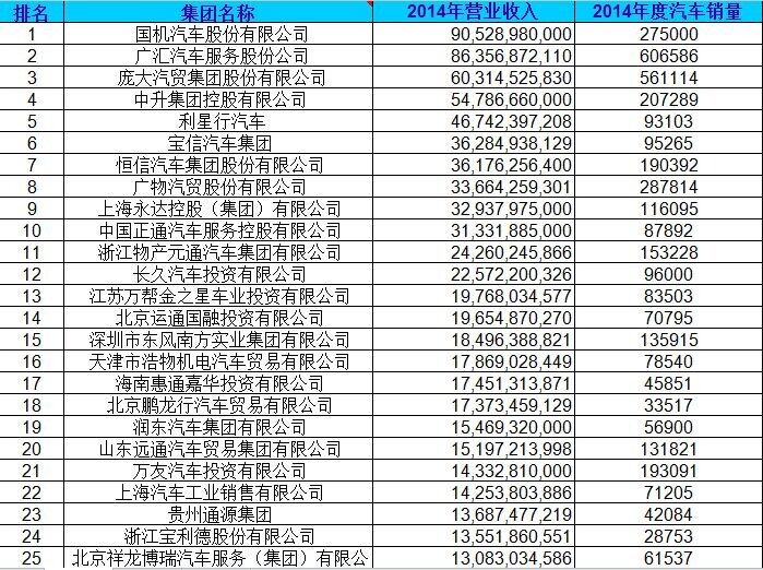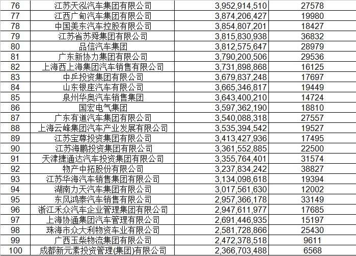 经销商集团百强排行表