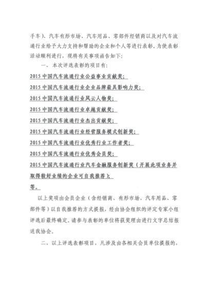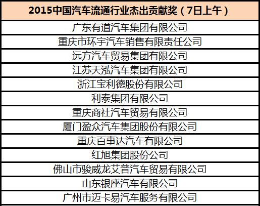 2015年度中国汽车流通行业杰出贡献奖获奖名单