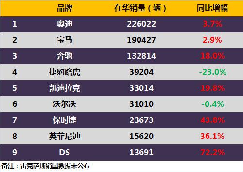 豪华车九强PK,增幅最高竟是DS,捷豹路虎痛哭