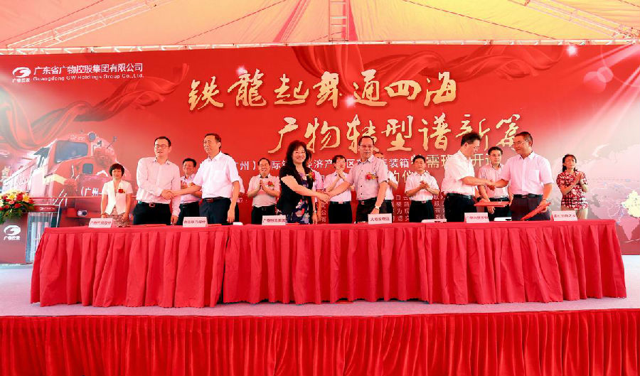 2016年7月20日,中国广州—7月19日上午,广东(广州)国际铁路经济产业区首列集装箱特需班列开通暨广物控股集团合作项目签约仪式在广物汽贸母集团广物控股白云仓成功举办。此次活动是广东省积极响应党和国家“一带一路”发展战略号召,同时也是广物控股、广物汽贸创新改革的重要标志。省政府及省发展改革委、省经济和信息化委、省商务厅、省国资委、省工商局,广州市及广州市白云区、阳江市江城区政府有关领导,广铁集团、广东华为现代物流有限公司、广州大顺发国际物流有限公司、广东粤运朗日股份有限公司、佛山市路之友机械制造有限公司等合作单位相关领导和各界嘉宾共150多人出席了仪式。