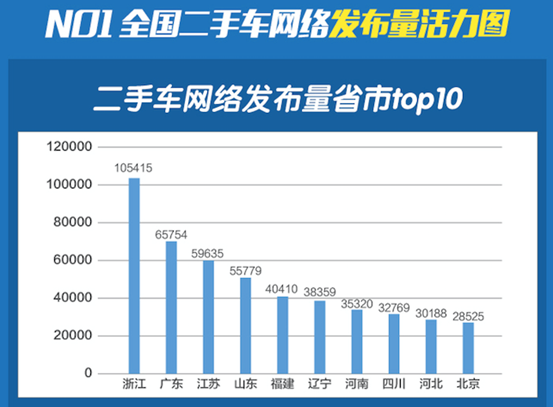 从8月开始,二手车市场交易量继续回暖,8月交易量86.3万辆,9月交易量89.3万辆,环比增长3.47%。同时网络发布量也持续增加,10月全网发车辆约77万辆。二手车网络交易量top10省份连续三个月没有发生变化,排名有微调,整体变化不大。数据表明南方省市发车量明显高于北方省市发车量。