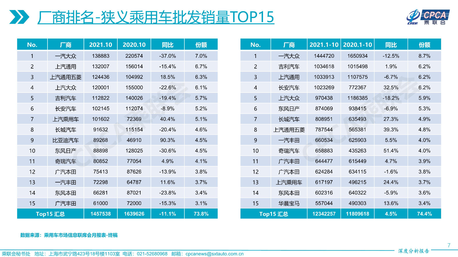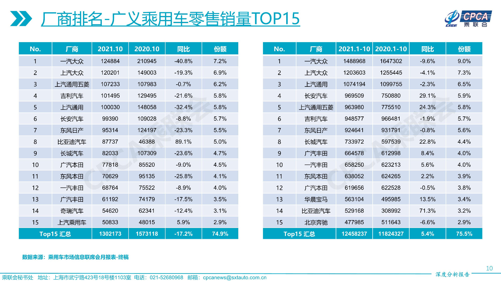 2021年10月份全国乘用车市场深度分析报告